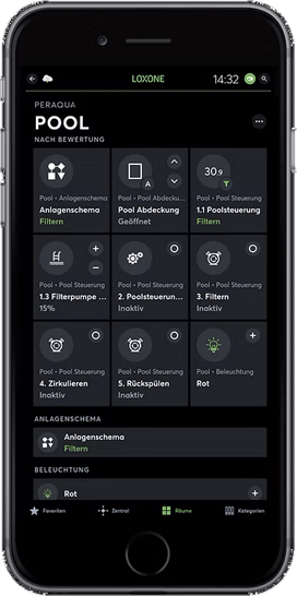 iQnnect merges precise pool technology from Peraqua with Loxone's intelligent automation to create a fully automated pool solution that redefines comfort, efficiency, and control. Modular, intuitive, and seamlessly integrated, iQnnect stands for the smart connection of pool technology and smart home.