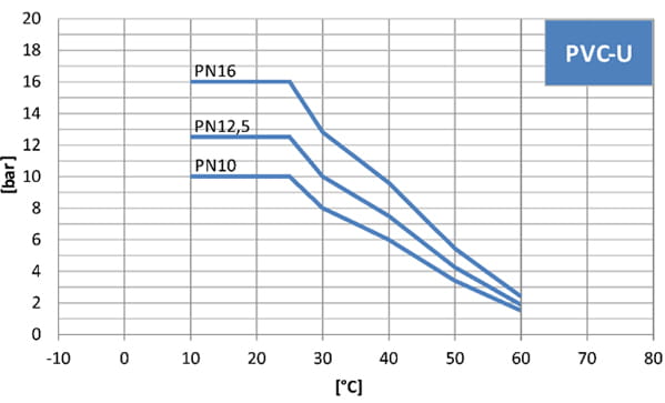 Note: The values of the pressure-temperature-diagram are based on a service life of 25 years at static pressure load and apply to water or water-like media.