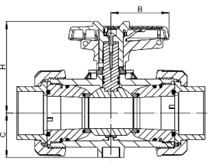 | DN20, solvent socket ends d25 metric with union nut, T-ball, PN16, grey | 210794 |
