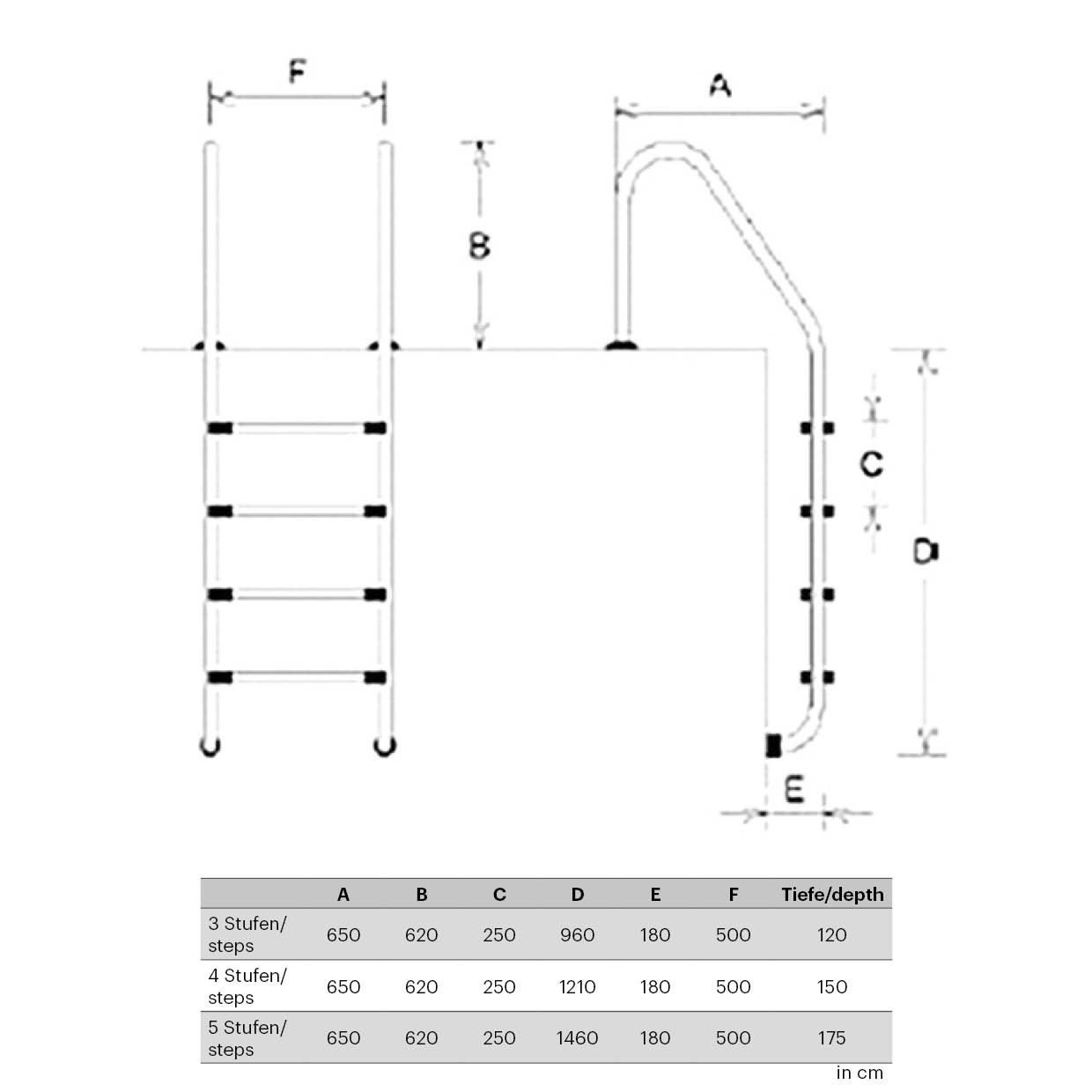 Made of bright polished stainless steel tubes ø43 mm outside (AISI304 / V2A), including installation kit (rubber bumper, screws and nuts AISI304 / V2A), produced according to EN 13451-1, EN 13451-2