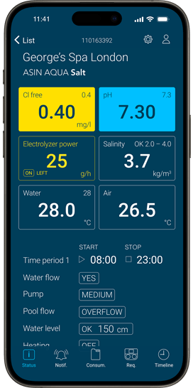 - Automatische Warnmeldungen: Bei Abweichungen informiert das System sofort - direkt auf dem Display oder über die Aseko Pool Live App.